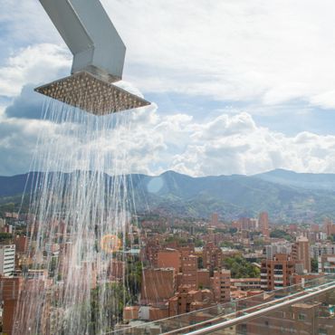 En lo más alto de INNTU hay un espacio para el descanso, equipado con solarium, jacuzzi, turco y máquinas para ejercicio.